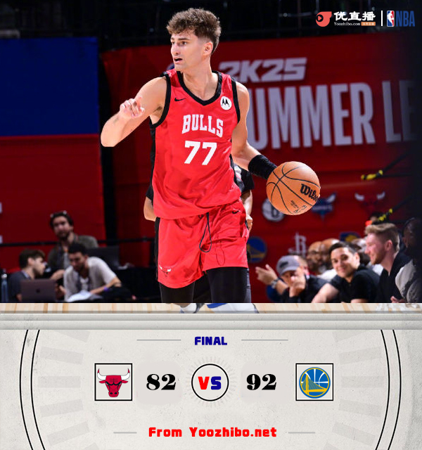 jrs直播网讯 7月15日讯 NBA夏季联赛,勇士对阵公牛。比赛开始后公牛抢得先机,不过波杰姆斯基首节三记三分帮助勇士完成反超。第二节两队都更多地选择冲击内线,半场过后勇士领先3分。易边再战,在波杰姆斯基的串联下勇士将分差拉大到10分左右,最后一节勇士继续拉大分差,虽然布泽利斯连连砍分但也难挽败局,最终勇士轻松击败公牛。