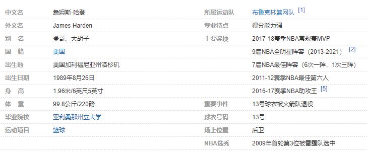 詹姆斯·哈登(James Harden),1989年8月26日出生于美国加利福尼亚州洛杉矶(Los Angeles, California),美国职业篮球运动员,司职后卫,效力于NBA布鲁克林篮网队。