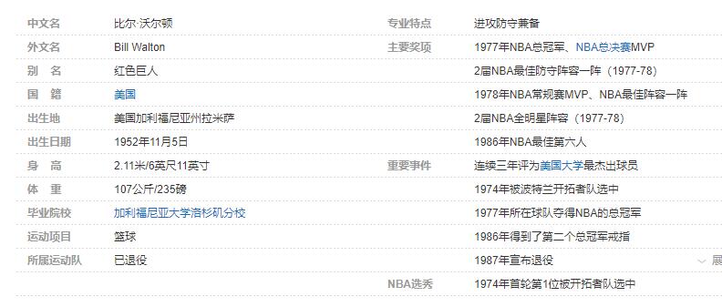 比尔-沃尔顿个人详细资料简介: