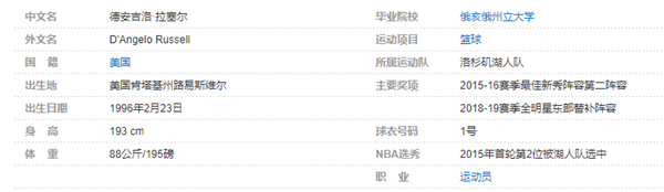 德安吉洛-拉塞尔个人详细资料简介: