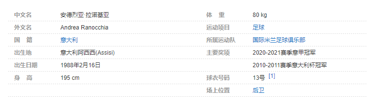 安德烈亚·拉诺基亚(Andrea Ranocchia),1988年2月16日出生于意大利阿西西(Assisi),意大利职业足球运动员,场上司职后卫,效力于国际米兰足球俱乐部。个人简介