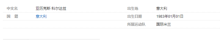 亚历克斯·科尔达兹,1983年1月1日出生于意大利,意大利职业足球运动员,场上司职门将,效力于国际米兰。