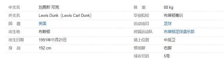 刘易斯-邓克个人详细资料简介
