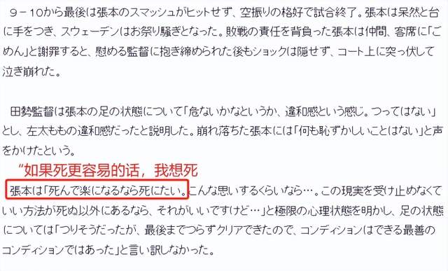 而张本智和则是跪地不起,非常痛苦。在单打比赛中,张本智和在2-0/3-2领先的情况下,输给了樊振东。这一次,张本智和更是遭遇了对手的惊天逆转。赛后,日本教练透露张本智和左大腿有伤。但显然张本智和不愿意以此为借口。他接受采访时表示:“如果死更容易的话,我宁愿去死。”