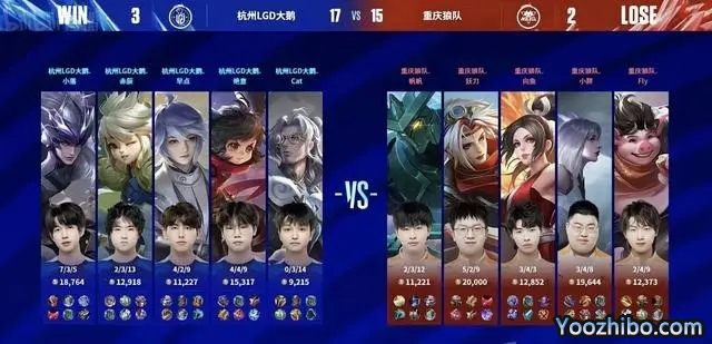 jrs直播网讯 北京时间04月14日,在KPL第一场比赛中,重庆狼队以2-3的比分爆冷不敌杭州LGD大鹅,重庆狼队五连胜提前终结,这也是重庆狼队本赛季的第二个败场。