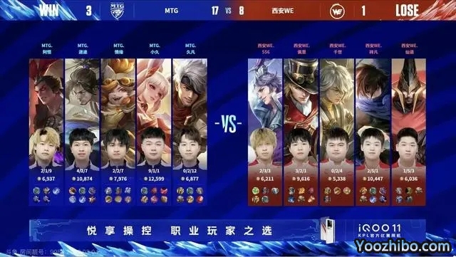 决胜局,MTG蓝色方,拿到了宫本武藏+公孙离。西安WE红色方,拿到了澜+马可波罗。开局MTG击杀澜,拿下一血。8分钟,MTG直推中路一塔。12分钟,MTG一波团灭西安WE。决胜团,MTG先手击杀西安WE马可波罗,一波团灭西安WE,直推水晶,拿下最终胜利!