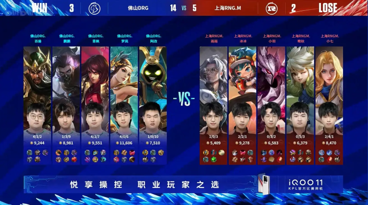最终,RNG战队凭借出色的防守和反击,成功抵御佛山DRG的猛烈进攻,快速反击成功推掉对手高地并拿下比赛。