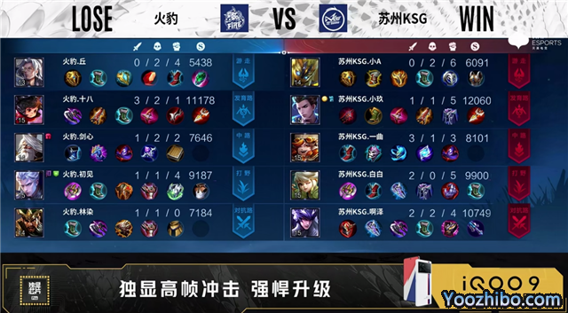 开局苏州KSG中路、发育路换线。1分10秒中路上河道团火豹打出1换2。3分钟野区团苏州KSG打出1换2。4分36秒苏州KSG摧毁敌方发育路外塔。5分48秒苏州KSG拿下先知主宰。6分15秒苏州KSG先后摧毁敌方中路、对抗路外塔。7分21秒苏州KSG摧毁敌方对抗路二塔。8分02秒苏州KSG拿下暴君。8分43秒苏州KSG摧毁敌方发育路二塔。10分20秒苏州KSG拿下暗影主宰。11分40秒高地团火豹打出0换2。11分32秒苏州KSG摧毁敌方发育路、中路高地塔。12分26秒火豹拿下暗影暴君。13分钟野区团,苏州KSG打出0换2。13分30秒高地团火豹打出1换2。15分23秒苏州KSG拿下1暗影主宰。16分28秒苏州KSG摧毁敌方对抗路高地塔。16分57秒苏州KSG拿下暗影暴君。18分钟高地团苏州KSG打出0换1,随后摧毁水晶拿下比赛。