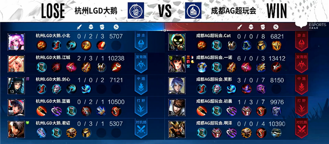 杭州LGD大鹅禁用:阿古朵、大乔、 镜、暃
