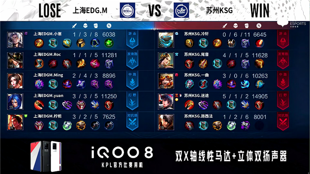 jrs直播网讯 11月6日2021年KPL秋季赛常规赛第二轮第四周第四日第二场,由上海EDG.M对阵苏州KSG,以下是本场比赛快讯。