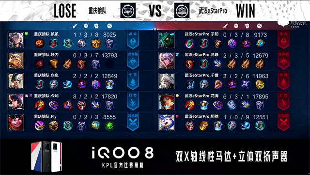 重庆狼队禁用:橘右京 嬴政 露娜 镜