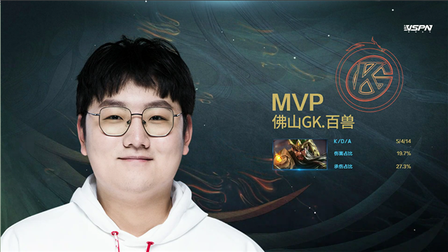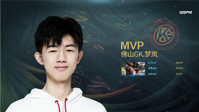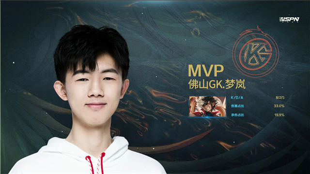 2分19秒,武汉ES拿下先知主宰,随后佛山GK控下暴君。4分15秒,武汉ES破掉佛山GK上一塔,随后阿古朵击杀武汉ES扁鹊拿下一血。4分48秒,武汉ES破掉佛山GK上二塔。6分32秒,武汉ES破掉佛山GK下二塔。6分49秒,武汉ES打出0换3,随后破掉佛山GK下高地。8分29秒,武汉ES破掉佛山GK上高地。9分18秒,武汉ES一波摧毁佛山GK水晶拿到赛点。
