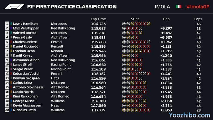 10月31日 2020F1意大利罗曼尼亚大奖赛第一次练习赛 全场录像回放