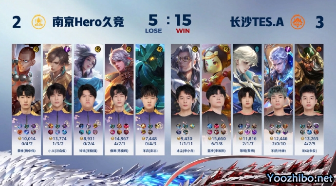 jrs直播网讯 北京时间7月10日,2024KPL夏季赛今日第二场比赛是由南京Hero久竞对阵到长沙TES.A!最终,南京Hero久竞2:3不敌长沙TES.A。