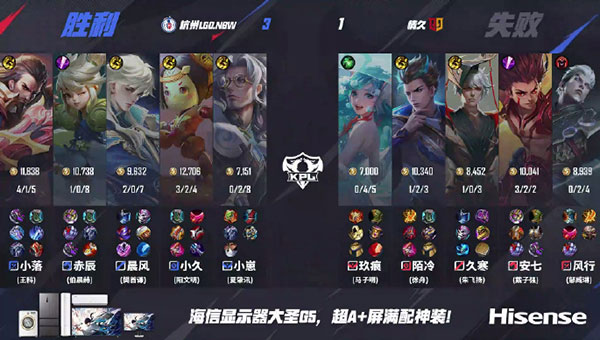 第四局:3分20秒,LGDNBW-小崽使用鲁班大师精准拉到对方朵莉亚,配合队友完成击杀,为杭州LGD.NBW打开局面。4分20秒,杭州LGD.NBW乘胜追击,再次击杀朵莉亚,并顺势拿下第一条小暴君,扩大优势。5分50秒,情久抓住机会,在上路成功击杀鲁班大师,挽回些许劣势。8分20秒,情久率先击杀开团的鲁班大师,不过LGDNBW-小落的曹操大招进场,打出高额输出,帮助杭州LGD.NBW实现2换3,重新掌握场上主动。10分30秒,LGDNBW-赤辰操控阿古朵控下暗影暴君,经济和节奏进一步巩固。11分50秒,情久安七的哪吒切掉鲁班七号,但自身也被换掉。14分20秒,杭州LGD.NBW再次控下暗影暴君,随后带着兵线进入水晶开团,以1换4的代价点破水晶,成功拿下本场比赛的胜利。本局MVP为LGDNBW-晨风(樊首谦)海诺!