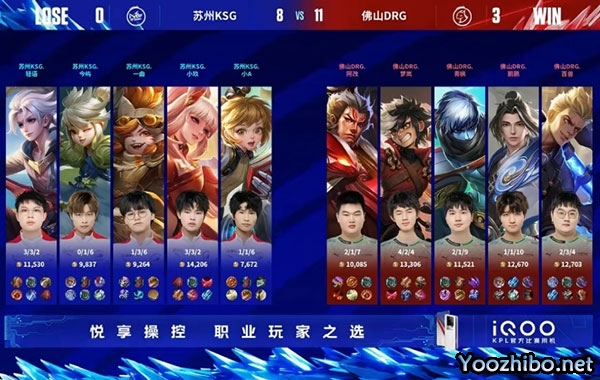 10分钟,佛山DRG拿下暗影暴君。11分钟,鬼谷子先手未果,佛山DRG_梦岚 伽罗持续输出配合队友造成对面连续掉点,兵线进入水晶,佛山DRG拿下本局比赛胜利,进入赛点!