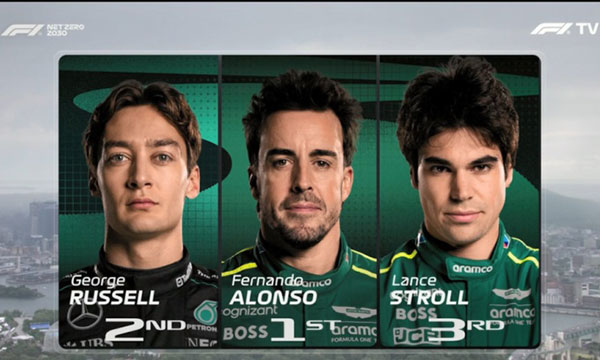 阿隆索1:20.451上到第1,里卡多在第2,加斯利1:20.789第3,拉塞尔和汉密尔顿在P4-5。