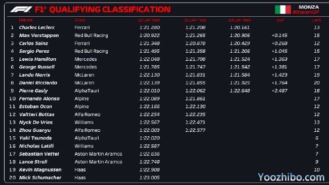 09月10日 2022F1意大利大奖赛排位赛 全场录像回放