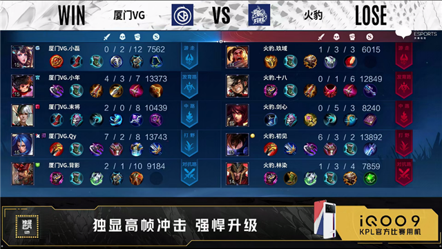 厦门VG选用:关羽,铠,不知火舞,孙膑,蒙犽