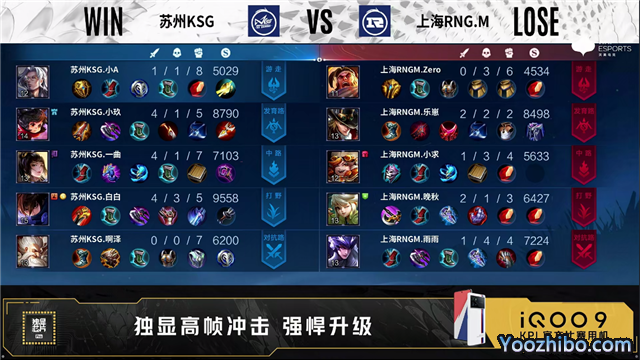 jrs直播网讯 北京时间6月25日2022年KPL夏季赛常规赛第一轮第三周第四日第一场,由苏州KSG对阵上海RNG.M,以下是本场比赛快讯: