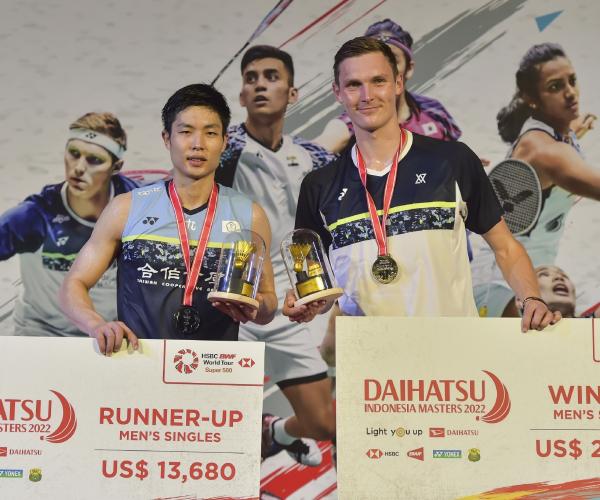 jrs直播网讯 北京时间2022羽毛球印尼大师赛男单决赛,在印度尼西亚首都雅加达举行的印尼羽毛球大师赛男单决赛中,丹麦选手安赛龙以2比0战胜中国台北选手周天成,夺得冠军。