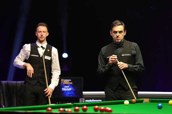 第二局特鲁姆普逐渐找到手感,打出一杆59分,以92-39再下一城2-0领先。第三局两人又陷入防守争夺,特鲁姆普把握住彩球机会,以62-50胜出3-0继续扩大优势。第四局特鲁姆普先上手一杆65分,奥沙利文顶住压力清台逆转,单杆71分后以71-65翻盘取胜,上半场特鲁姆普3-1领先。