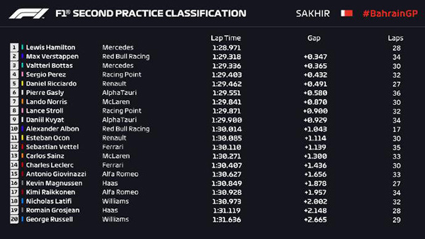 11月27日 2020F1巴林大奖赛第二次练习赛 全场录像回放