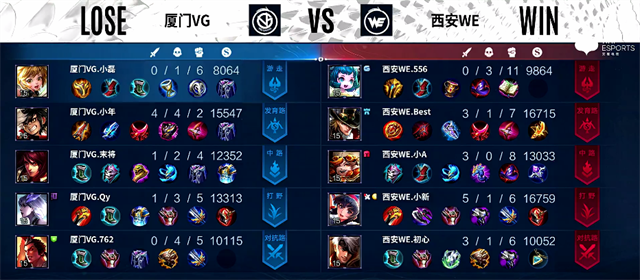 jrs直播网讯 9月24日2021年KPL秋季赛常规赛第一周第三日第一场,由西安WE对阵厦门VG,以下是本场比赛快讯。