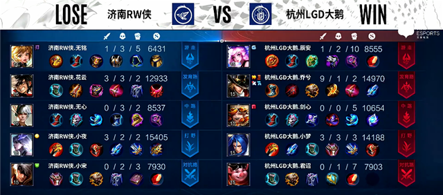 杭州LGD大鹅禁用: 澜、兰陵王、狄仁杰、李元芳