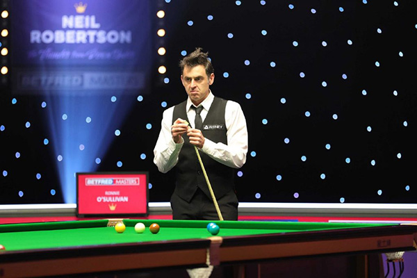 第五局奥沙利文上手本来有一杆制胜的机会,结果单杆60分后母球落入中袋。不过此后奥沙利文还是再次上手,又拿6分以66-8再追一局。第六局两人多回合防守后,丁俊晖红球中袋打进上手,一杆制胜成功破百,攻下129分清台4-2领先。