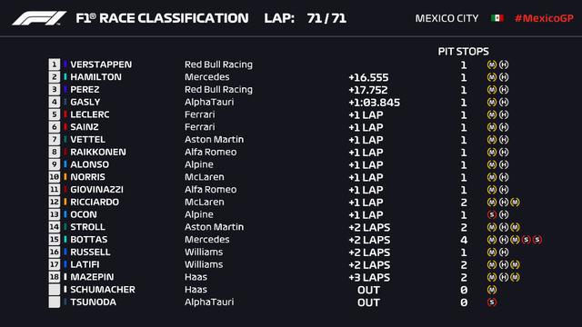 墨西哥大奖赛正赛最终成绩
