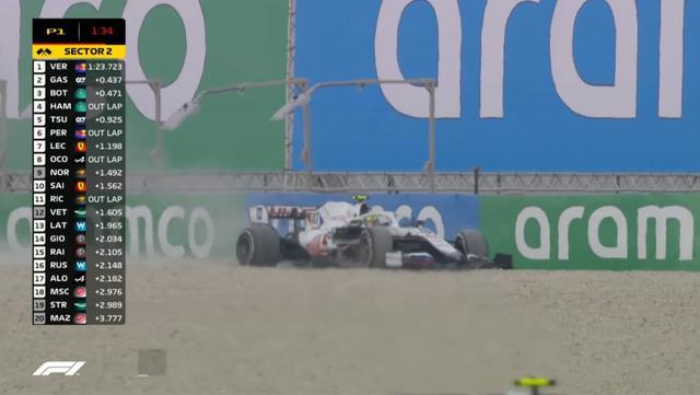 一练临近尾声,米克·舒马赫冲出了赛道,并且引发了一段短暂的黄旗。