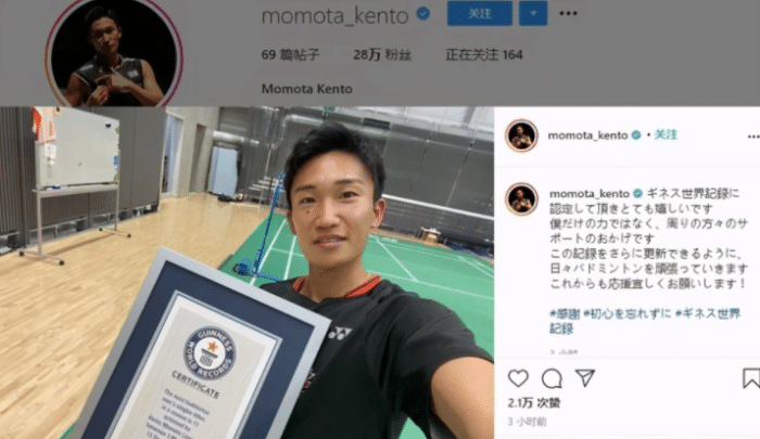 同时桃田贤斗还获得了吉尼斯世界纪录的认证,11个冠军足以看出他在那一年的绝对统治力。