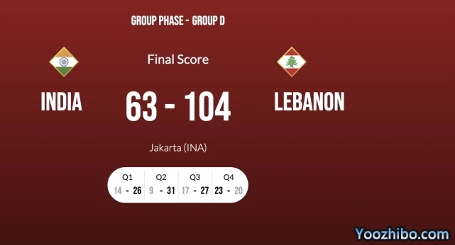 jrs直播网讯:北京时间7月17日讯 男篮亚洲杯小组赛继续进行,印度男篮对阵黎巴嫩男篮,最终,印度队63-104、41分惨败给了黎巴嫩队,第二节单节印度队更是9-31,又是一场惨案,印度队遭遇了3连败,这三场合计输了136分。