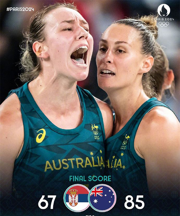 jrs直播网8月7日讯 巴黎奥运会女篮1/4决赛,塞尔维亚女篮对阵澳大利亚女篮,小组赛两支球队都是2胜1负的战绩排在各自小组第2名。比赛开始,双方上来都迅速进入比赛状态,史密斯撑起澳大利亚进攻,但塞尔维亚女篮能给出回应咬住比分,乔治里突外投连砍7分,澳大利亚首节领先7分,次节墨尔本里突外投接连砍分,澳大利亚顺势拉开双位数领先,随后墨尔本继续上分带领澳大利亚8-0结束半场,领先到16分。下半场,塞尔维亚7-2小高潮止血,但史密斯联手惠特科姆带领澳大利亚回应一波17-0超强攻击波直接拉开近30分领先,末节双方命中率都有下降,塞尔维亚依靠三分追分,但澳大利亚牢牢掌握住20分左右领先优势,最终澳大利亚女篮85-67轻取塞尔维亚女篮,晋级四强,对手将是美国女篮与尼日利亚女篮之间的胜者!