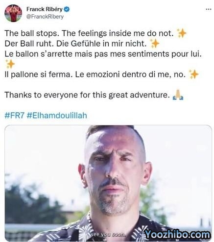 39岁拜仁传奇里贝里宣布退役,2013年金球惜败C罗留憾