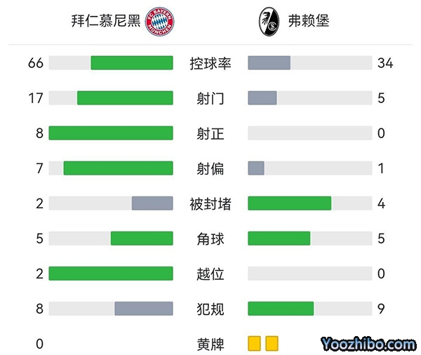 全场结束,拜仁5-0击败弗赖堡。