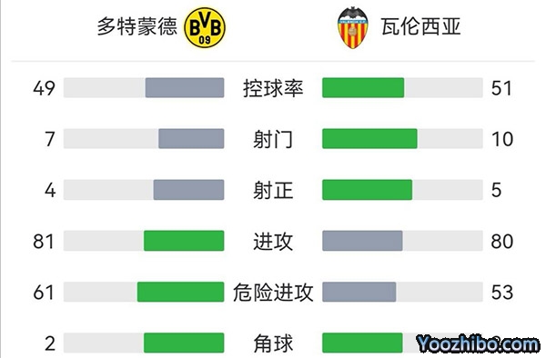 全场比赛结束,多特蒙德1-3瓦伦西亚。