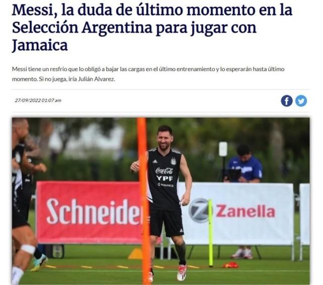 来源:jrs直播网09-27 22:27jrs直播网09月27日,来自阿根廷权威媒体TYC的最新消息,因为身患流感,梅西有可能无缘出战阿根廷与牙买加的热身赛,曼城红星阿尔瓦雷斯将会顶替他首发。