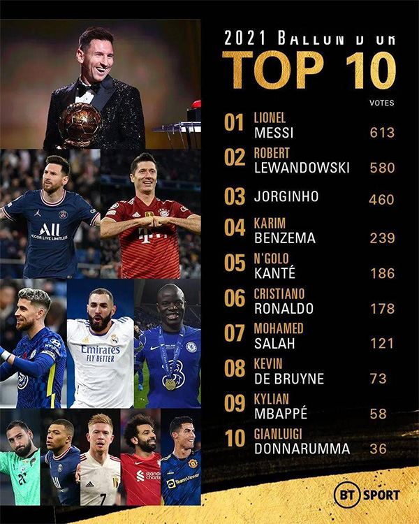 jrs直播网讯北京时间11月30日凌晨,2021年金球奖颁奖典礼就将在巴黎夏特莱剧院举行,梅西最终获得个人第7座金球奖,莱万获得第二,若日尼奥第三,C罗第六!