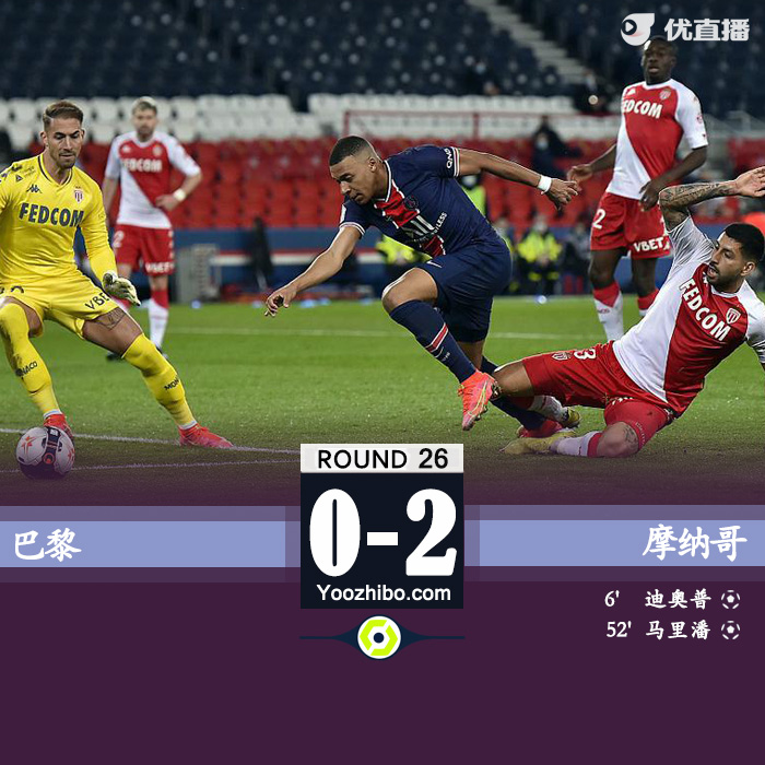 jrs直播网2月22日讯 北京时间2月22日4点,法甲第26轮焦点战巴黎圣日耳曼对阵摩纳哥,上半场,迪奥普早早帮助摩纳哥取得领先,巴黎在场上状态低迷,姆巴佩也是多次遭到抢断。下半场,马里潘为摩纳哥再下一城,本耶德尔错失良机,巴黎仍旧没有创造出威胁机会,全场比赛结束,摩纳哥2-0巴黎圣日耳曼。本场比赛过后,巴黎仍旧以54分排在联赛第三,摩纳哥拿到52分缩小和巴黎的差距。