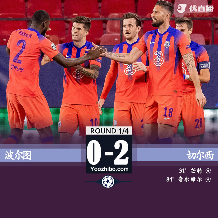 jrs直播网4月8日讯 北京时间04月08日星期四03:00,欧冠1/4决赛首回合波尔图迎战切尔西。上半场比赛,若日尼奥助攻,芒特破门,切尔西半场1-0领先波尔图,蓝军上半场仅仅一脚射门就取得进球。下半场,普利西奇射门中框,奇尔维尔扩大比分。最终,波尔图0-2不敌切尔西。两队4月14日的次回合交锋,仍将在皮斯胡安球场进行。