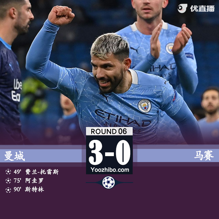 jrs直播网讯:北京时间12月10日04:00(英国当地时间9日20:00),2020/21赛季欧冠C组第6比赛日一场焦点战在伊蒂哈德球场展开争夺,曼城主场3比0完胜马赛,费兰-托雷斯、阿圭罗和斯特林先后进球。曼城获得头名,携手波尔图晋级。