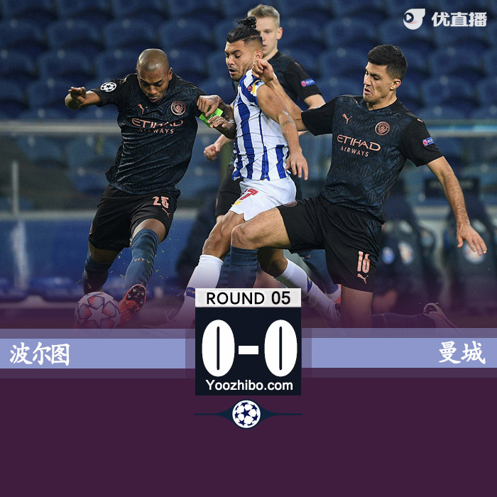 jrs直播网讯:北京时间12月2日04:00(葡萄牙当地时间1日20:00),2020/21赛季欧冠C组第5比赛日一场焦点战在巨龙球场展开争夺,曼城客场0比0战平波尔图,斯特林射丢单刀,迪亚斯错失空门。曼城提前一轮锁定小组头名。