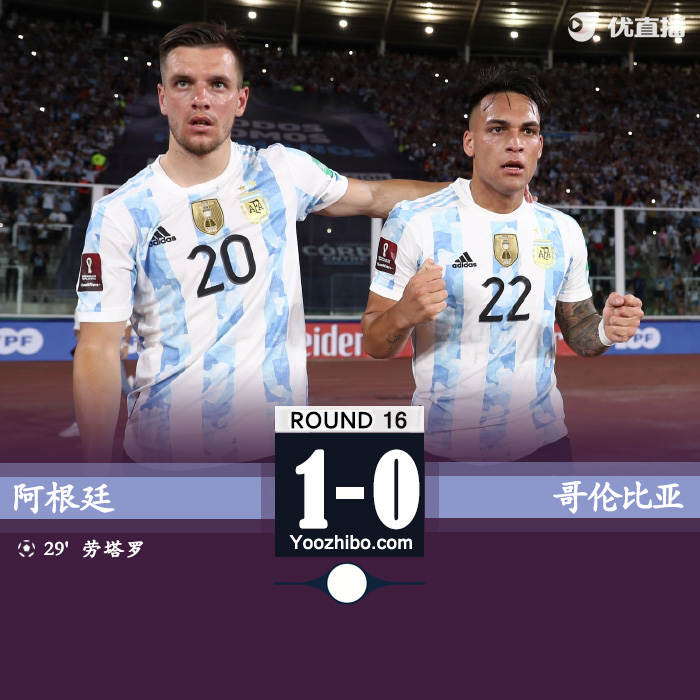 jrs直播网2月2日讯 北京时间2月2日上午7:30,世界杯南美区预选赛,阿根廷对阵哥伦比亚。上半场,劳塔罗扫射破门。半场战罢,阿根廷暂1-0哥伦比亚。下半场,迪马利亚屡造险。全场结束,阿根廷1-0战胜哥伦比亚。
