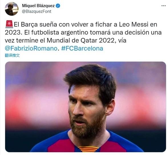 来源:jrs直播网09-23 12:16jrs直播网09月23日,来自知名记者Miquel Blazquez的透露,西甲豪门巴塞罗那希望能在2023年的夏天重新签回梅西,而梅西本人将会在世界杯结束后,再决定自己的未来。