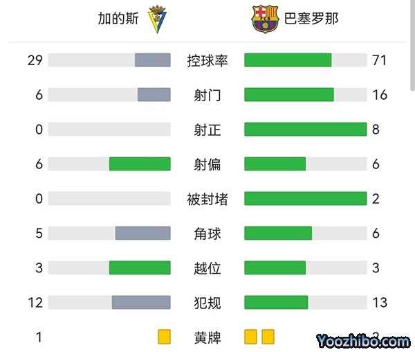全场比赛结束,巴萨客场4-0加的斯。