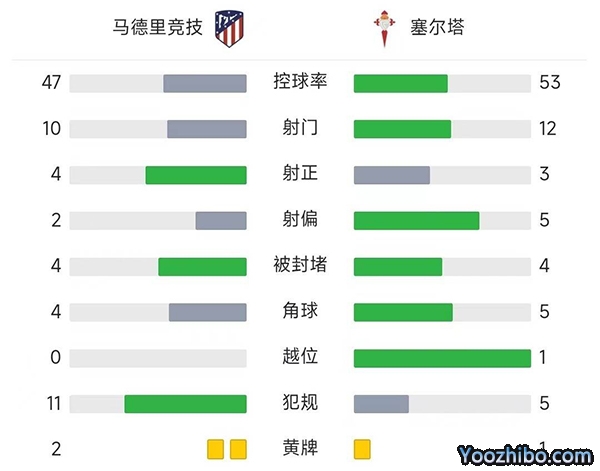 第49分钟,德保罗远射得分!这球是一脚回坐后的禁区外兜射,打到塞尔塔球员的身上变线入网!2-0马竞扩大了领先!