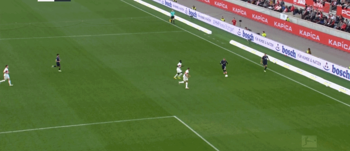 斯图加特下半场伤停补时第8分钟顽强绝平免遭逆转,昂达夫禁区内抽射破门!3比3。