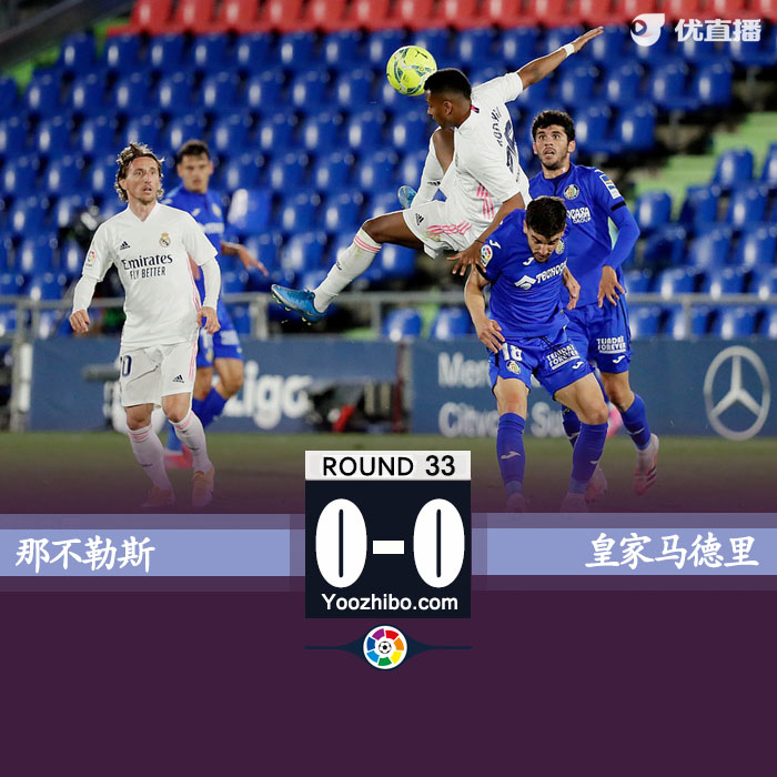 jrs直播网4月19日讯 北京时间04月19日星期一03:00,西甲第33轮赫塔费对阵皇家马德里。上半场,马里亚诺进球越位无效,赫塔费狂打门零射正,皇马半场暂0-0赫塔费。下半场,库尔图瓦屡献神扑。最终,皇马客场0-0战平赫塔费,银河战舰4连胜终结,落后榜首马竞3分。